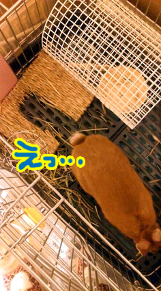 仕事から帰ってきて、ケージを覗いたらいつも通り団子状態に丸まっているウサギが。
