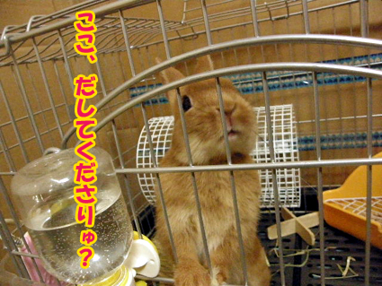 ケージを噛まずに目線で訴えるようになりました。