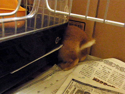 ケージの掃除中、何回も立ち上がって掃除をのぞき見。